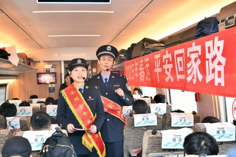 14日10时40分许,G445次列车从天津站出发。上车宣传的民警们为旅客们带来了丰富多彩的艺术表演。“未知平台不要信,陌生转账要当心!”两位民警用快板形式向旅客进行反诈宣传。京沪高铁女子乘警组的女警则现场表演了节目。到了普法环节,民警们讲解了春运出行安全常识和列车上高发的几类警情,通过生动鲜活的案例中将这些知识讲述给旅客。